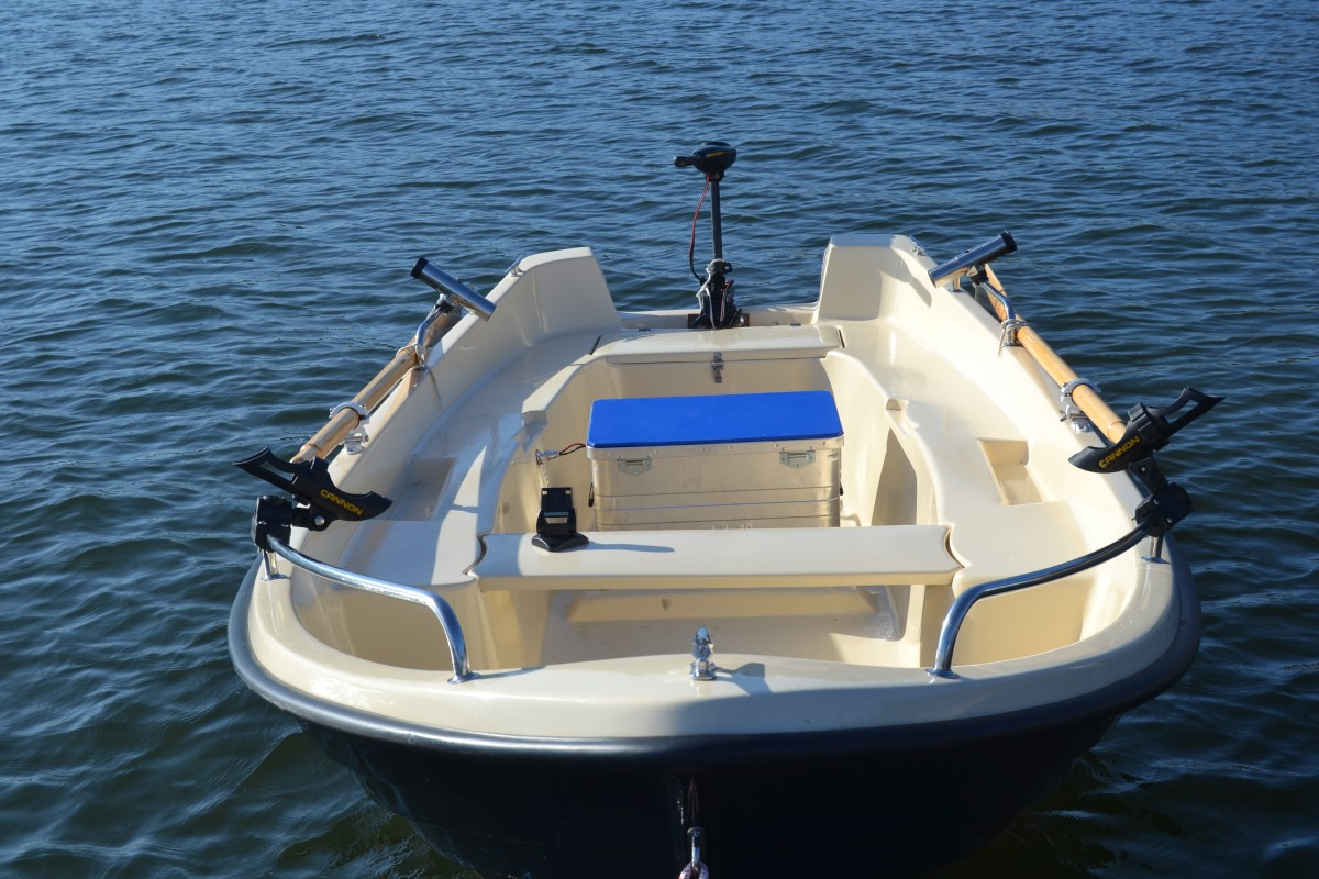 Mietpreis pro Tag: € 110,– (von 09.00 bis 18.00 Uhr) inklusive: Elektromotor, Echolot, Ruder, Rutenhalter, Anker, Rettungswesten
