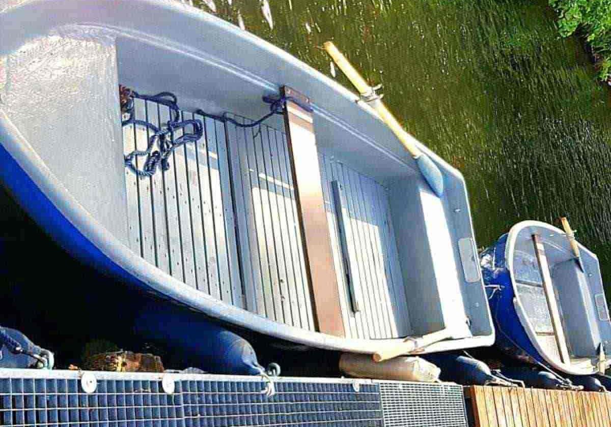 Das Angelboot mieten Berlin mit 3 PS Motor -Ruderboot in Köpenick Grünau Richtershorn liegt im Hafen bei Berlin, ist für bis zu 2 Personen zugelassen.