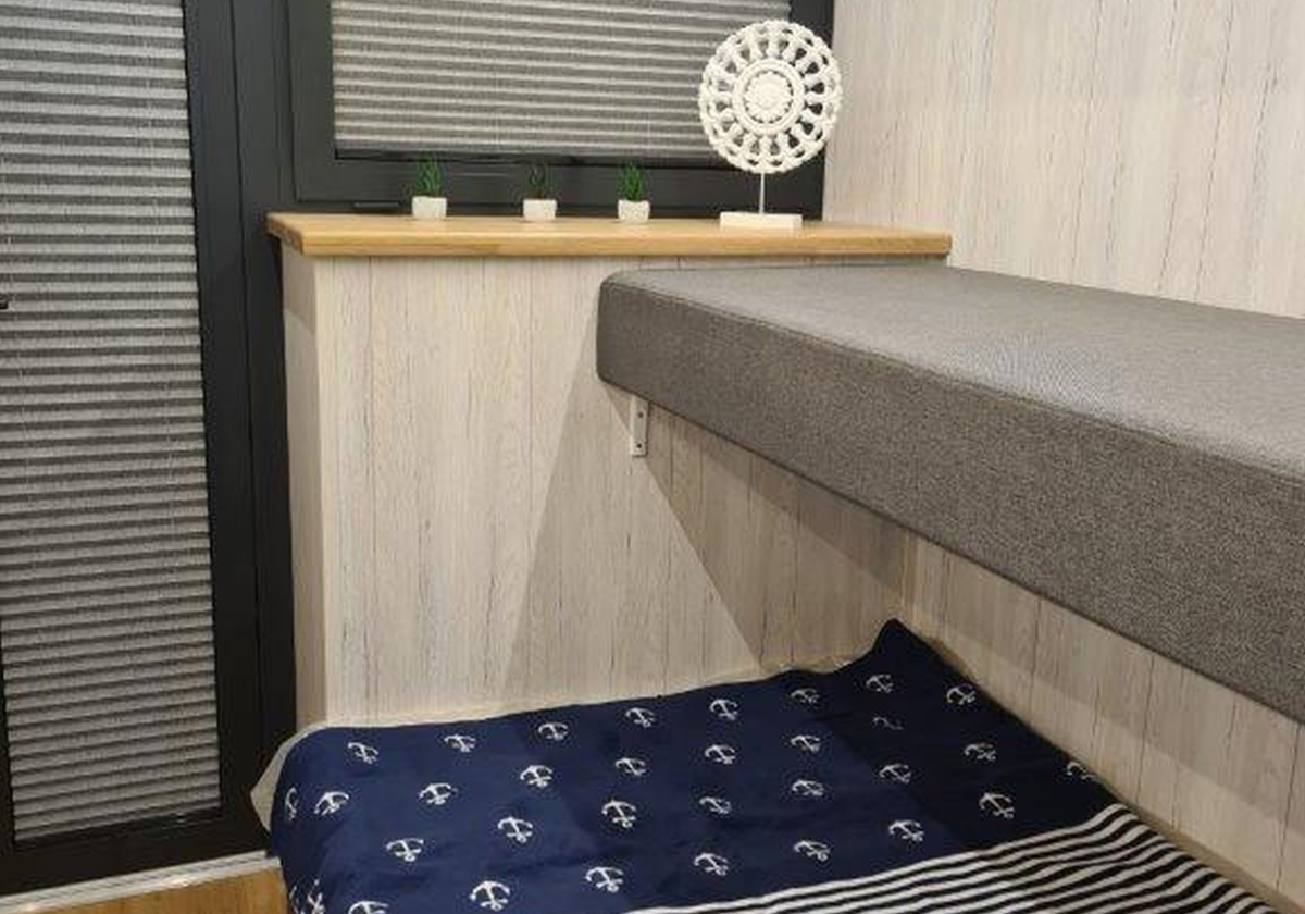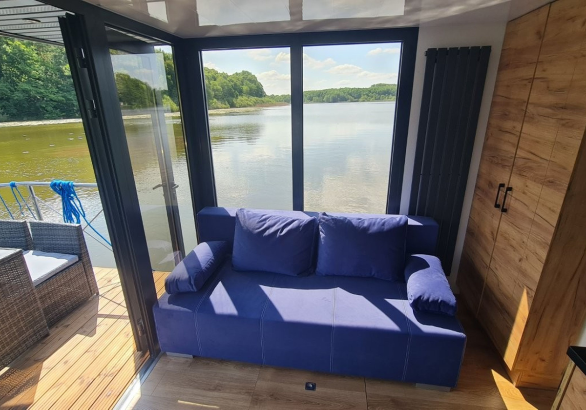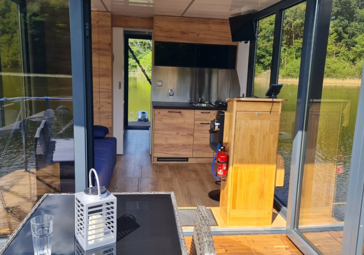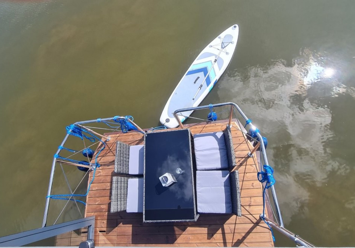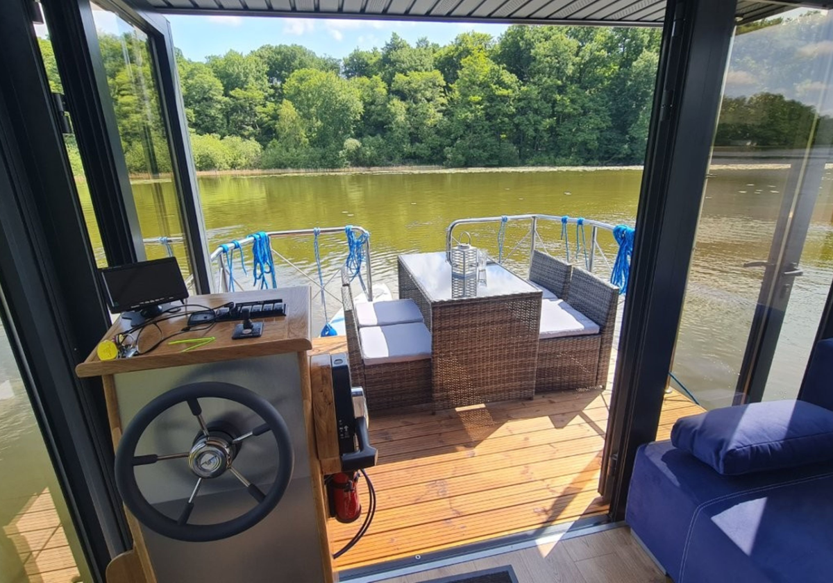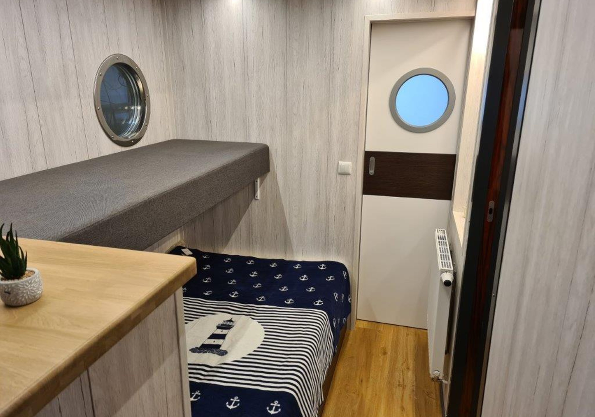 Im Inneren erwartet dich alles, was du für einen erholsamen Aufenthalt brauchst: eine gemütliche Kabine, ein Badezimmer, eine voll ausgestattete Küche mit Gasherd, Kühlschrank und Geschirr sowie eine Heizung für kühlere Tage. Vom Sonnendeck aus kannst du den Blick über das Wasser schweifen lassen, während du den Morgenkaffee genießt oder abends den Sonnenuntergang beobachtest.