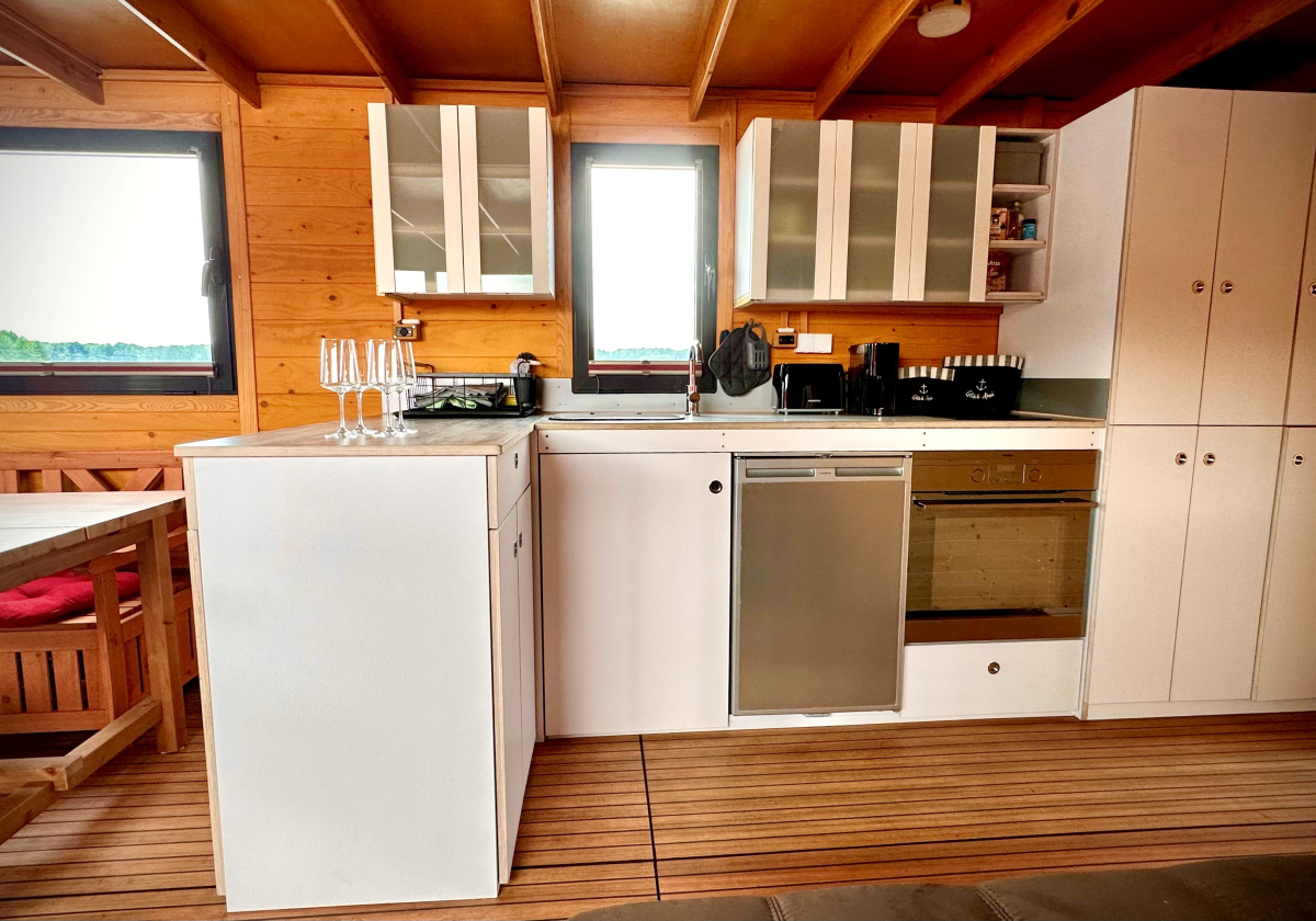 Die autarke Solar Stromversorgung mit 220V sorgt dafür, dass Sie auch in der Abgeschiedenheit die Annehmlichkeiten des modernen Lebens genießen können. Egal, ob Sie ein gemütliches Frühstück an Deck genießen oder abends bei stimmungsvollem Licht entspannen möchten – Hausboot Frieda ist der ideale Ort für Ihren nächsten Urlaub auf dem Wasser.