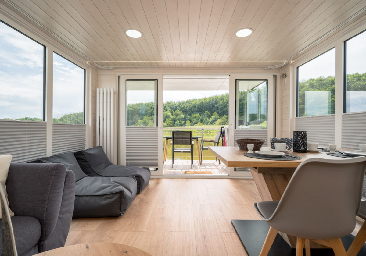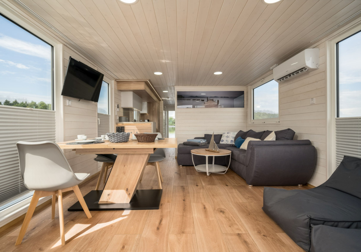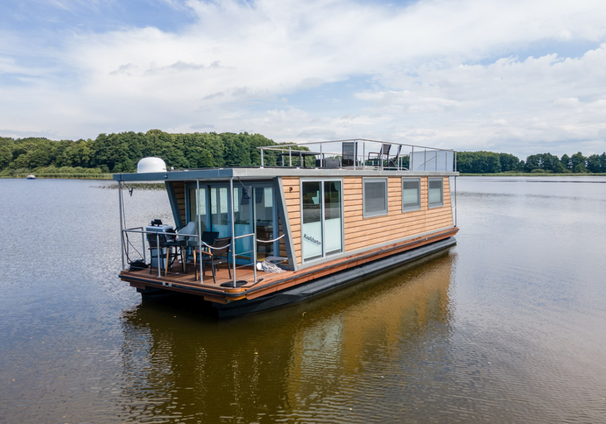 Unser schwimmendes Ferienhaus bringt alles mit was Sie für einen gelungenen Urlaub brauchen und das in mitten herrlicher Natur. Genießen Sie laue Sommerabende auf der möblierten Dachterrasse mit der ganzen Familie und lassen Sie die Seele baumeln.