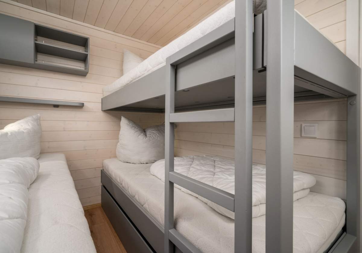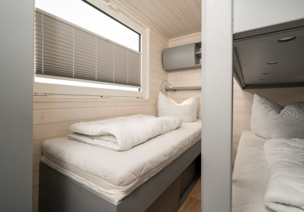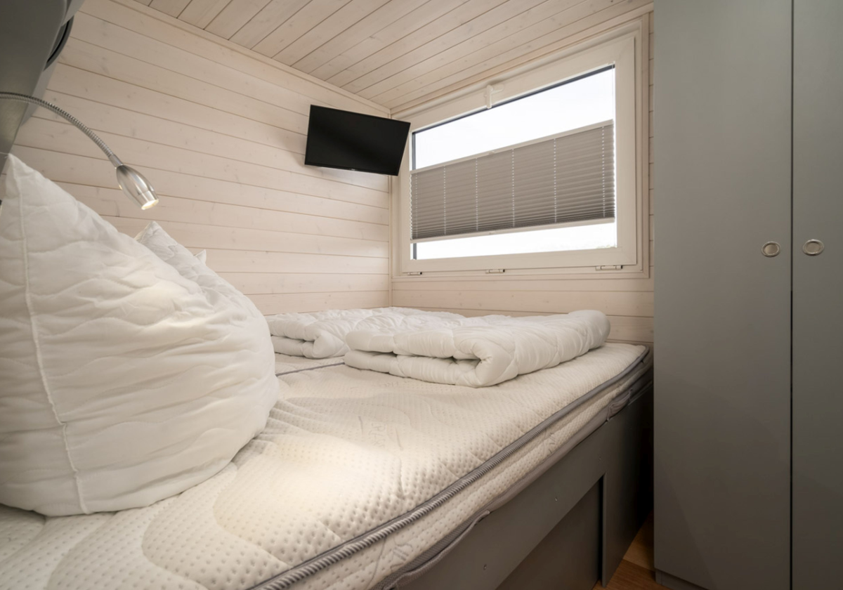 Das führerscheinfreie Hausboot ist modern eingerichtet und verfügt über 48 Quadratmeter Wohnfläche. In gemütlicher Wohnatmosphäre finden Sie 2 Schlafzimmer (1 Doppelbett, 1 Etagenbett, 1 Einzelbett), 1 Wohnzimmer mit Schlafcouch, eine voll ausgestattete Küchenzeile sowie ein Badezimmer mit Dusche und WC.