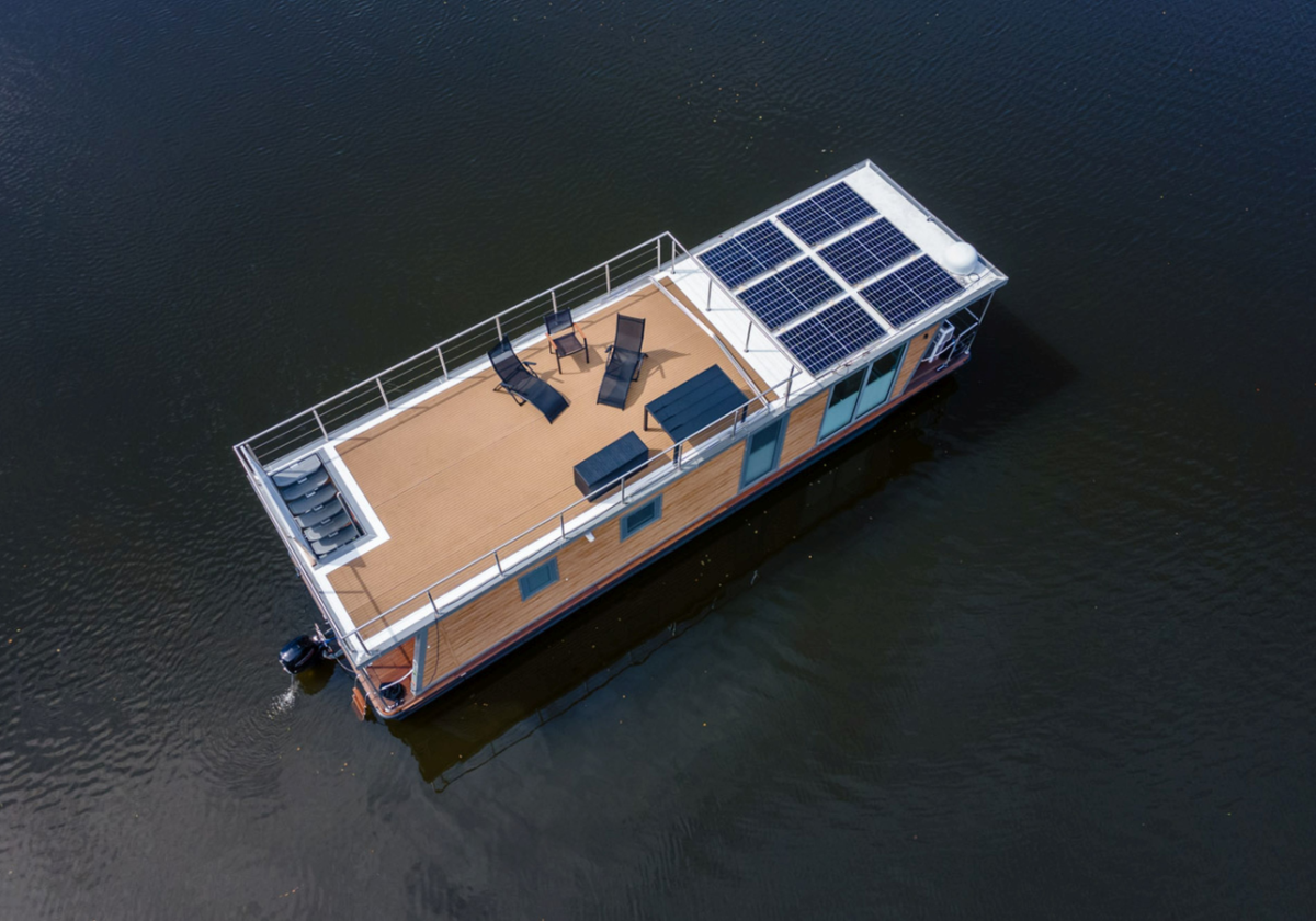 Unser schwimmendes Ferienhaus bringt alles mit was Sie für einen gelungenen Urlaub brauchen und das in mitten herrlicher Natur. Genießen Sie laue Sommerabende auf der möblierten Dachterrasse mit der ganzen Familie und lassen Sie die Seele baumeln.