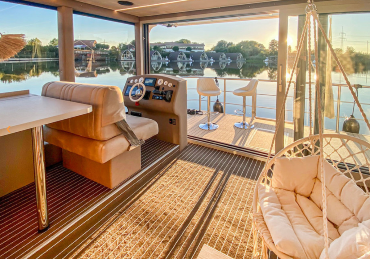 Das Hausboot wurde zweitausendvierundzwanzig vom Hersteller Desidus gebaut und wird von einem sechzig PS starken Außenborder angetrieben. Ein Bugstrahlruder erleichtert das Manövrieren im Hafen und macht auch längere Touren angenehm. Für Komfort an Bord sorgen Heizung, Klimaanlage, ein kleiner Kamin sowie moderne technische Ausstattung wie ein Fernseher und ein Konverter von zwölf Volt zu zweihundertzwanzig Volt. Rettungsring, Schwimmwesten und weitere sicherheitsrelevante Ausstattungen sind selbstverständlich vorhanden.