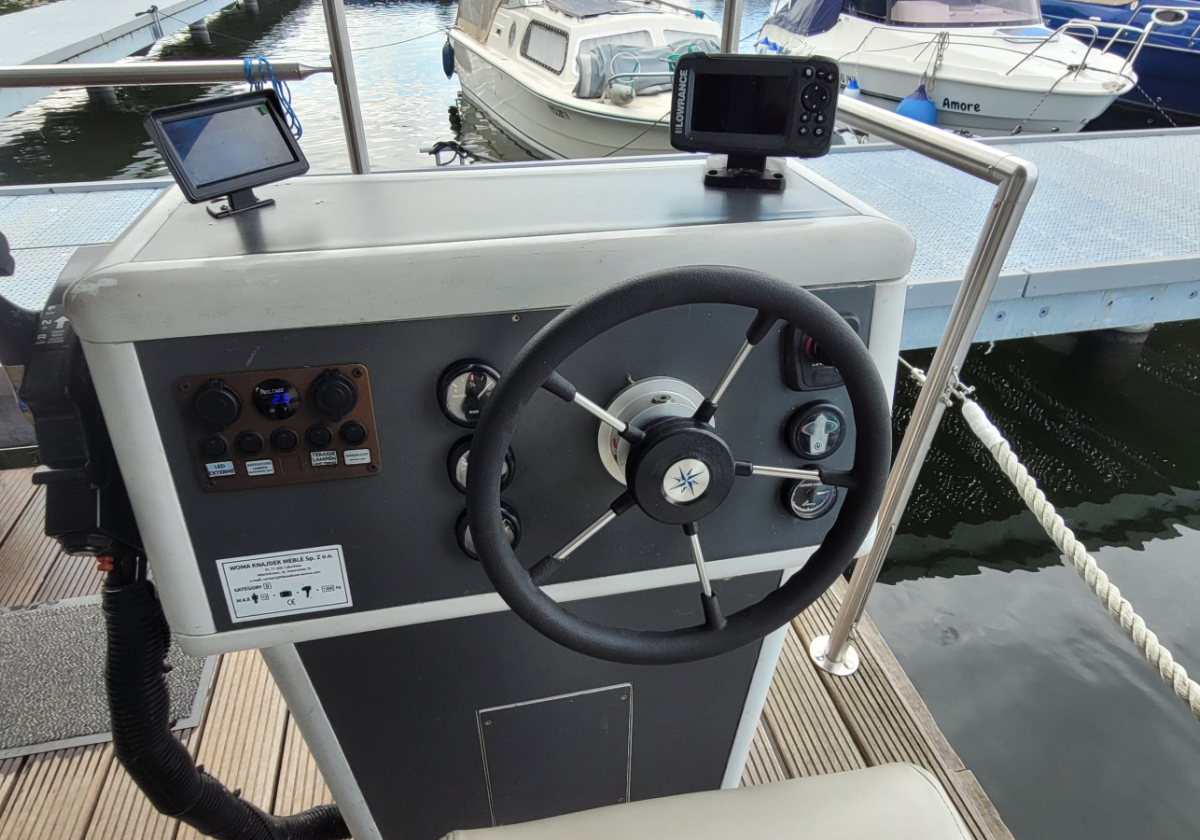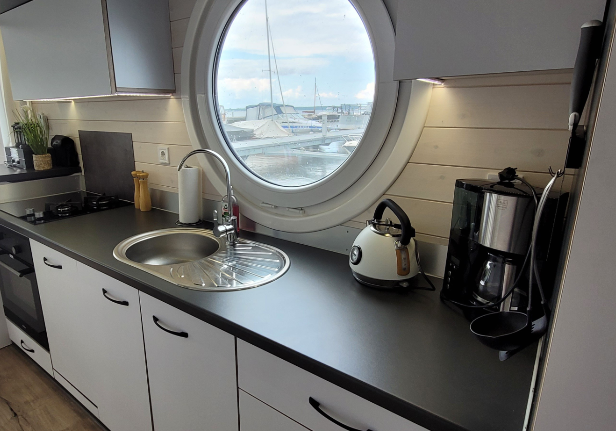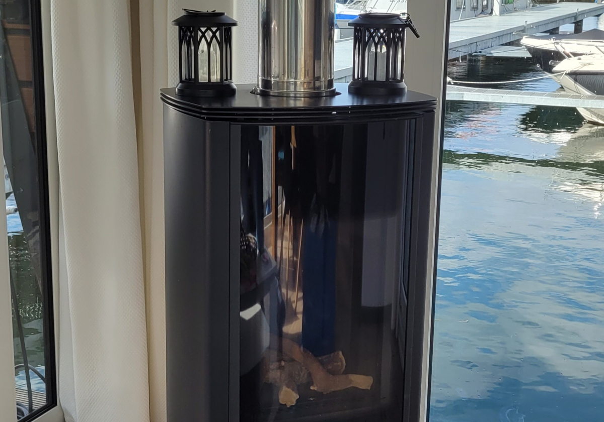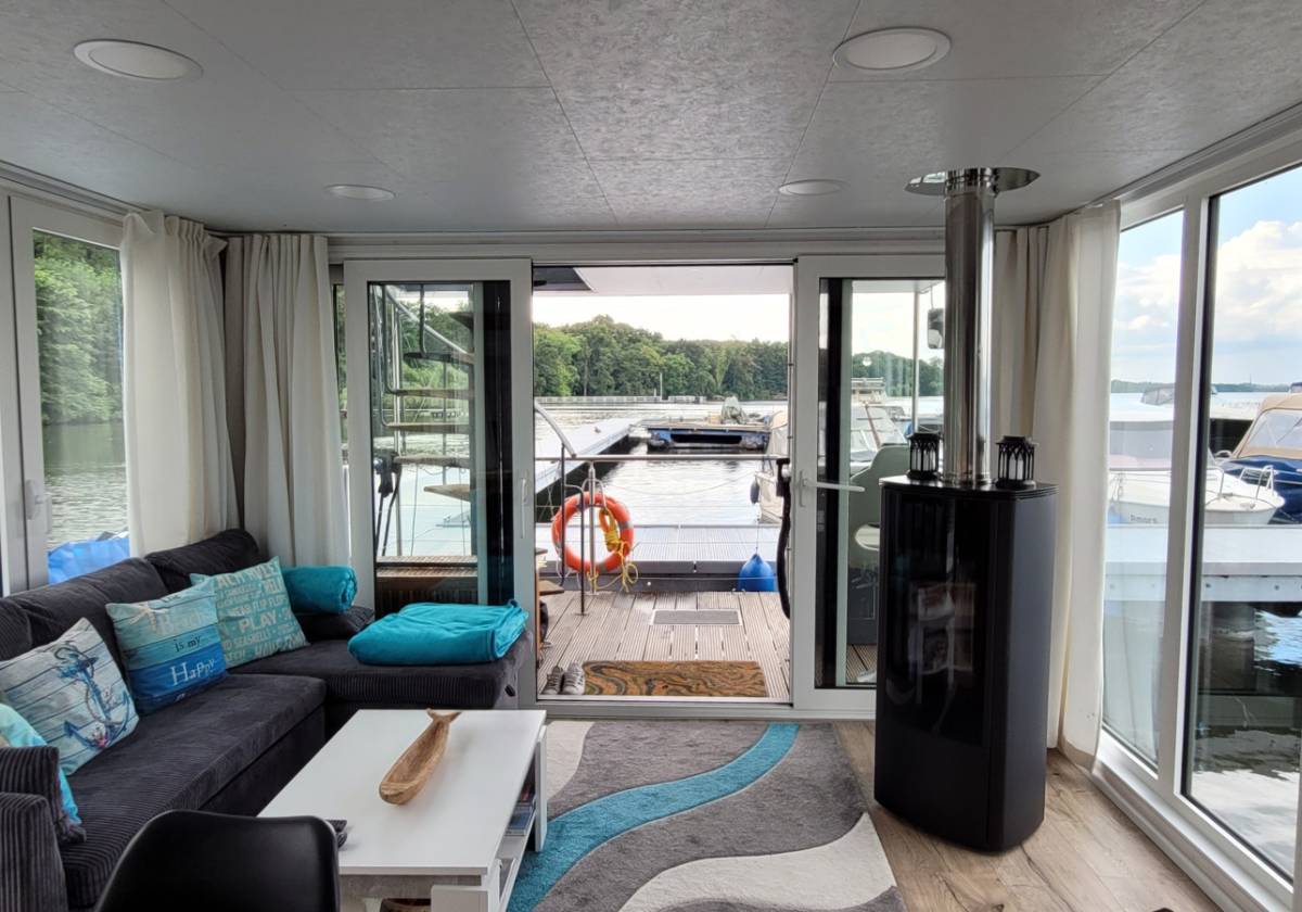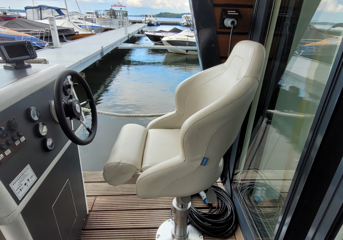 In der offenen und gut ausgestatteten Küche mit Backofen, Gas-Herd und Elektro-Herd lassen sich selbst auf dem Wasser Ihre Lieblingsgerichte zubereiten. Es steht Ihnen ein vollwertig separates Badezimmer mit Dusche und WC zur Verfügung. An kühleren oder regnerischen Tagen sorgen eine leistungsstarke Heizung und der Kamin für wohlige Wärme und Sie können es sich in dem hellen Wohnzimmer mit Panorama Fenstern bei einen Glas Wein gemütlich machen. Daher kann das Boot auch ganzjährig genutzt werden.