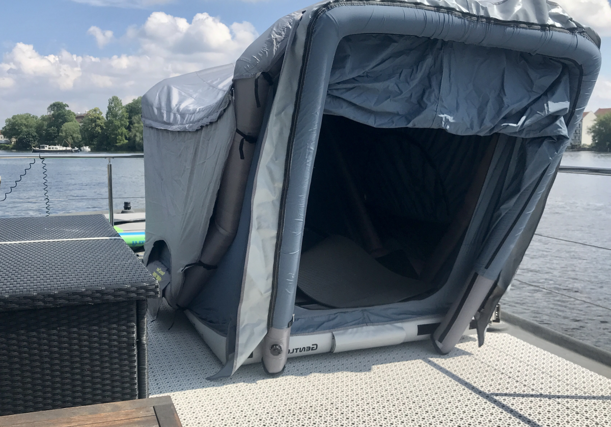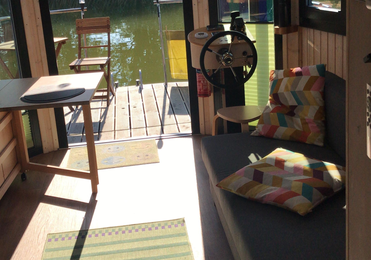 Der Bug des Hausbootes gestaltet sich als ein gedeckter Aussensitzplatz ..