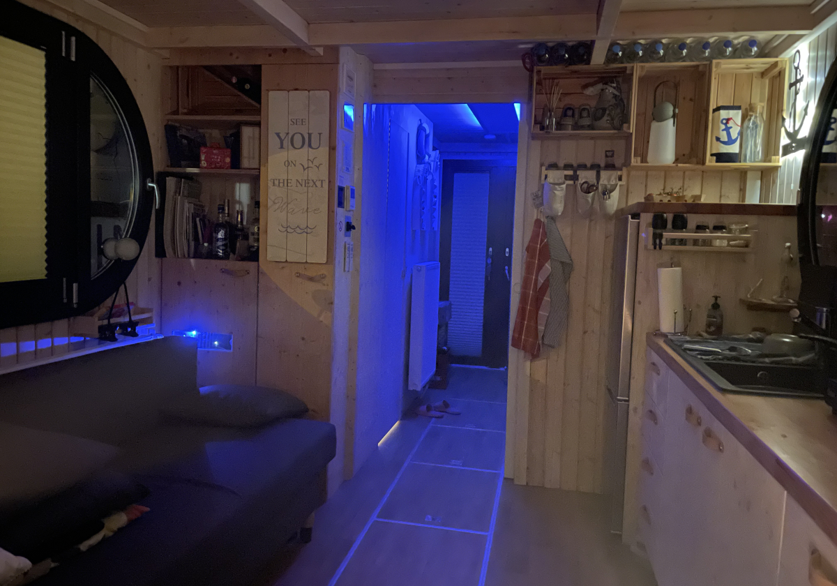 Sowohl am Landstrom angeschlossen, als auch auf den Gewässern, beim ankern und fahren, ist eine 220V Stromversorgung gewährleistet. USB Anschlüsse und Steckdosen sind in ausreichender Anzahl über das ganze Boot verteilt. Je nach individuellem Nutzerverhalten ist die Strom-, Wasser- und Abwasserautarkie von mehreren Tagen bis gut zwei Wochen gesichert.