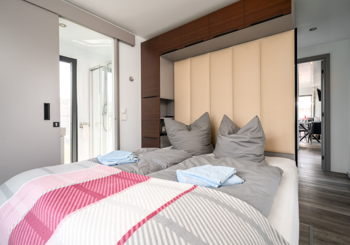 Zwei geräumige Schlafzimmer, jedes mit eigenem Vollbad und Fernseher, lassen zwei gemeinsam reisenden Paaren ihre Privatsphäre oder Eltern ein wenig Ruhe vor den Kindern.