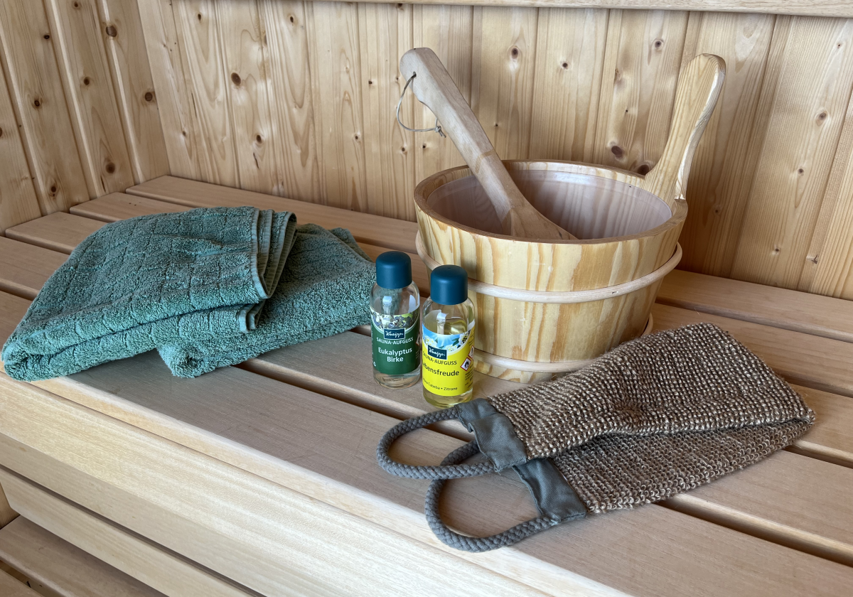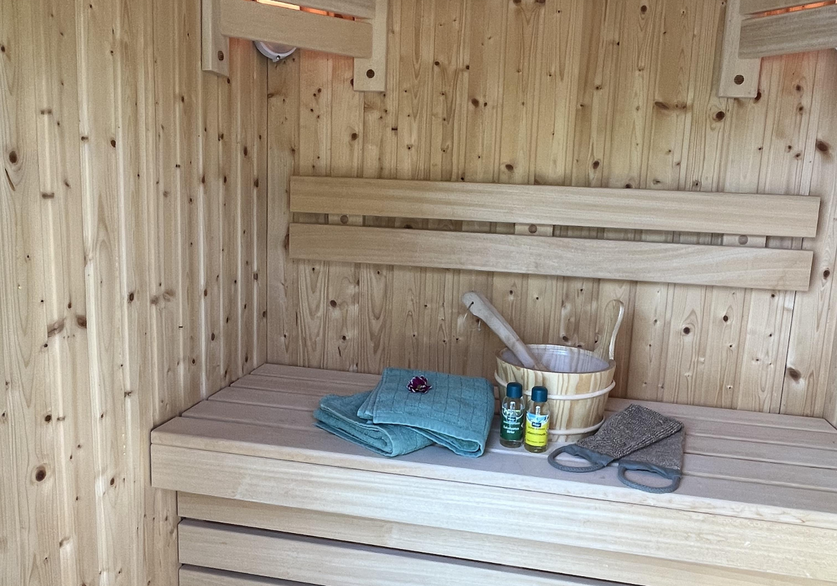 Über eine Tür im hinteren Schlafzimmer gelangen Sie zur 4,5 m² großen Heckterrasse, welche mit Zugang zur finnischen Sauna rundum der Entspannung und des Wohlbefindens dient. Nach einem wohltuenden Saunagang können Sie sich über die montierte Badeleiter abhärten oder im Sommer nach einem erfrischenden Bad das Hausboot zurückerobern. Das Badezimmer ist mit einer Dusche, elektr. Toilette und einem Waschbecken ausgestattet und rundet den Wellnessbereich ab.