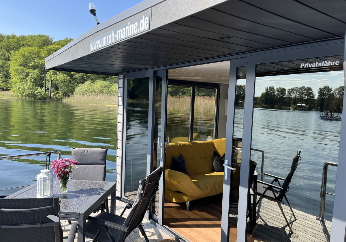Für das Hausboot "PrivatsFähre | La Mare LL Apartboot" ist ein Bootsführerschein erforderlich. Vor der Fahrt erhältst du eine Einweisung durch den Anbieter.