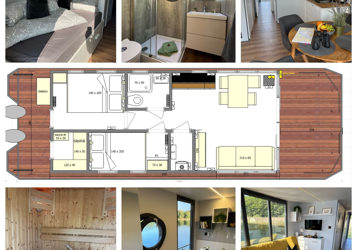 Unser "La Mare Apart LL" ist ein modernes Hausboot, welches mit 12m Länge und 4,2m Breite auf ca. 50m² ausreichend Freiraum, aber auch Rückzugsmöglichkeiten für die ganze Familie bietet.