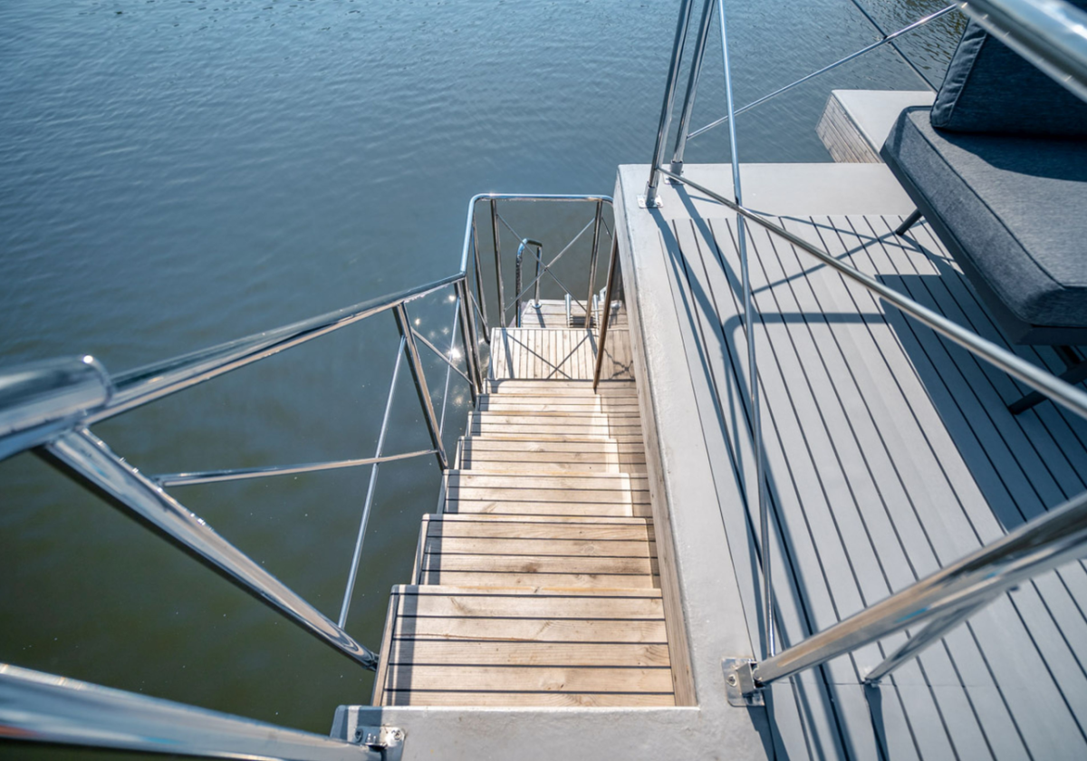 Unsere moderne Schwimmsteganlage ist mit allem ausgestattet, was du brauchst: Ausreichend Landstromanschlüsse einzeln mit 16 Ampere abgesichert, Frischwasser immer in Reichweite und zwei Abpumpstationen an denen es sich nie staut. Für entsprechend ausgestattete Boote können wir auch direkt am Liegeplatz ver- und entsorgen, was speziell im Winter interessant ist wenn du weniger fahren willst.