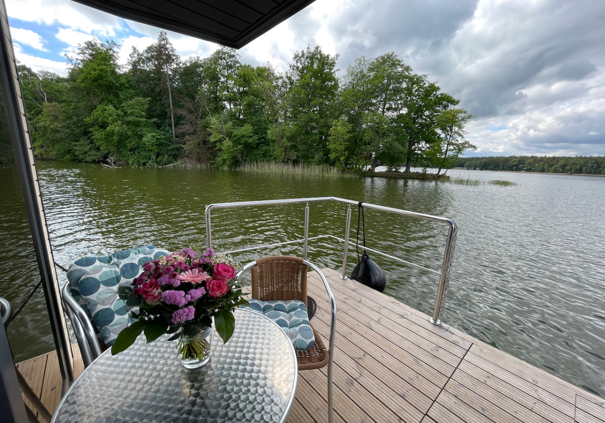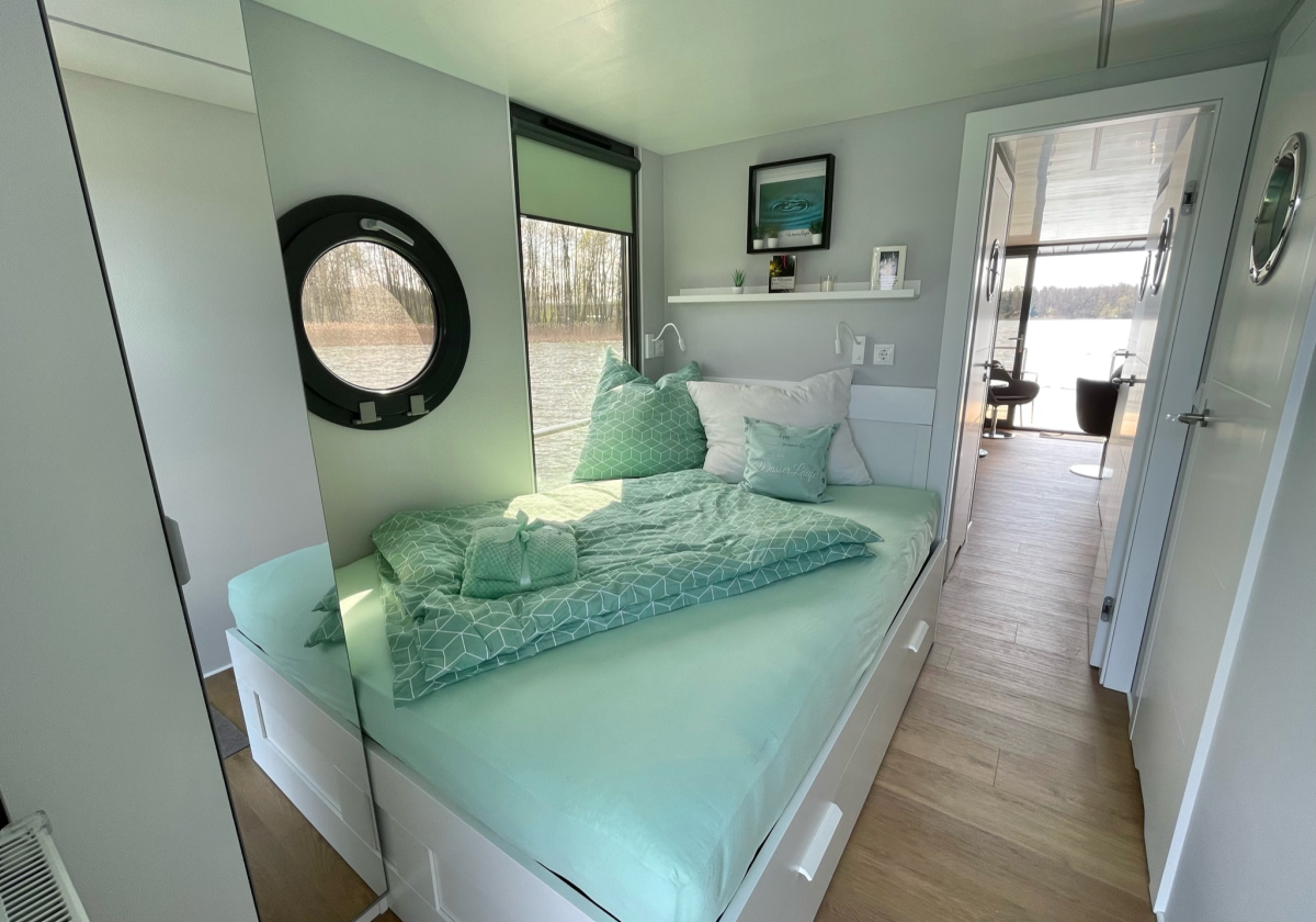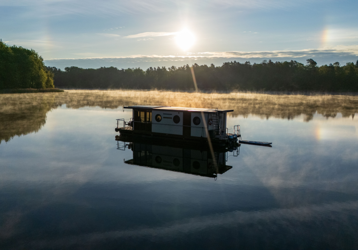 Das speziell für die ganzjährige Nutzung ausgelegte Hausboot bietet auf ca. 30 Quadratmetern Wohnfläche Freiraum und Unabhängigkeit für die ganze Familie. Das innovative Konzept bietet Ihnen den Komfort einer Luxus-Ferienwohnung und zugleich die Mobilität einer Motoryacht. Die Außenhaut des Aufbaus ist speziell für den Einsatz in allen Jahreszeiten isoliert und die gasbetriebene Warmwasserheizung sorgt selbst an kalten Wintertagen für eine komfortable Raumtemperatur. Und nach dem Aufenthalt auf dem Außendeck wartet drinnen eine heiße Dusche auf Sie. Vier durch Landstrom und Solaranlage gespeiste Batterien versorgen unterwegs alle elektrischen Verbraucher. Und selbst die Offshore-Sauna lässt sich dank ihres innovativen Gas/Strom-Hybrid Systems nicht nur am Stromanschluss im Hafen, sondern auch draußen auf dem See nutzen, wo Sie nach dem Saunieren ungeniert ins kalte Wasser springen können. Nach dem Sprung ins kalte Nass wartet direkt an der Badeleiter eine warme Dusche auf dem Außendeck auf Sie. Der 5G-Breitband-Internetrouter sorgt auch auf dem Wasser für starkes WLAN und auf dem TV im Wohnbereich lassen sich so bei ausreichendem Funkempfang die Inhalte Ihrer Lieblings-Mediatheken streamen. Und wenn der nächste Sendemast doch mal zu weit entfernt ist, lassen sich die Lieblingsfilme auf dem integrierten DVD-Player abspielen. Manövrieren Sie Ihr Hausboot im Hafen, unterstützt durch das zusätzliche Bugstrahlruder und mit dem Überblick der beiden Heckkameras. Verweilen Sie an den schönsten Ankerplätzen, die Anderen versagt bleiben. Wir wünschen Ihnen erholsame Tage und tolle Sonnenuntergänge in Brandenburg und Mecklenburg Vorpommern. Kommen Sie an Bord, wir freuen uns auf Sie!