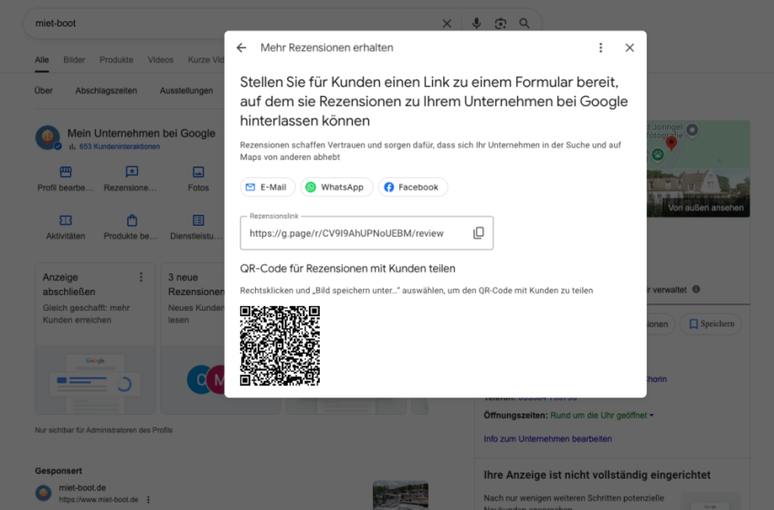 - Profilname eingeben (z. B. Bootsverleih Berlin Köpenick)