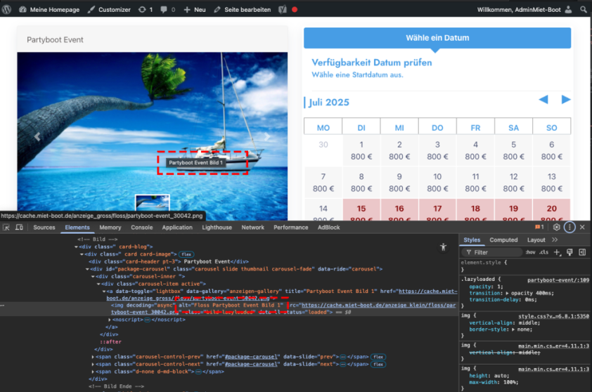 - Vergib sinnvolle Dateinamen für Bilder (z. B. boot-mit-grill.jpg) und fülle Alt-Texte aus.