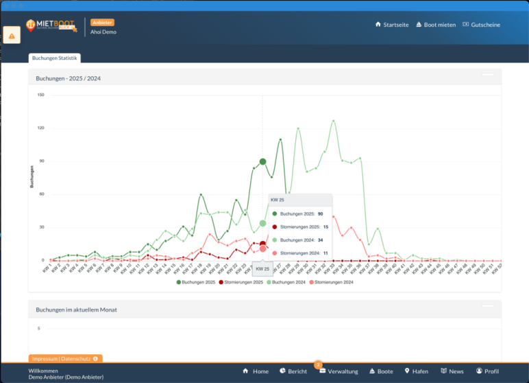 - In der Statistik werden dir Top-Boote, Optionen, Tarife und gekaufte Gutscheine angezeigt.
