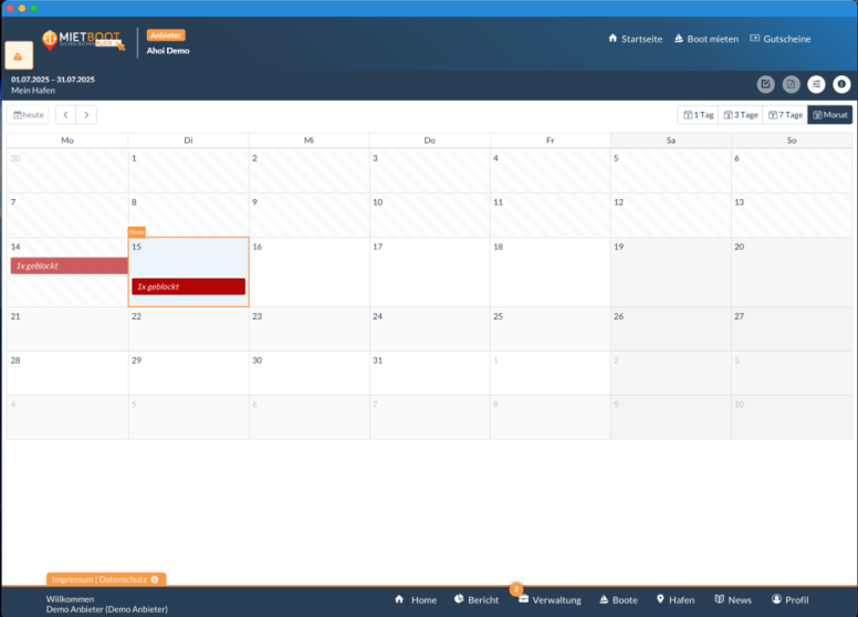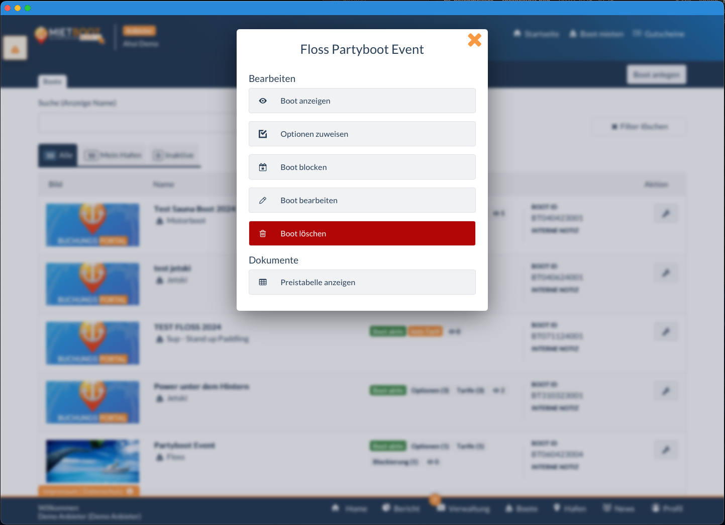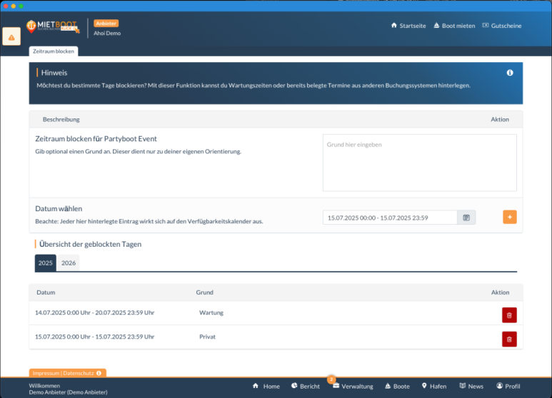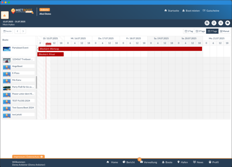Es gibt mehrere Möglichkeiten, ein Boot zeitweise unbuchbar zu machen. Die manuelle Sperrung ist ideal für Fälle wie Motorschäden, Wartung oder wenn das Boot anderweitig vergeben wurde.