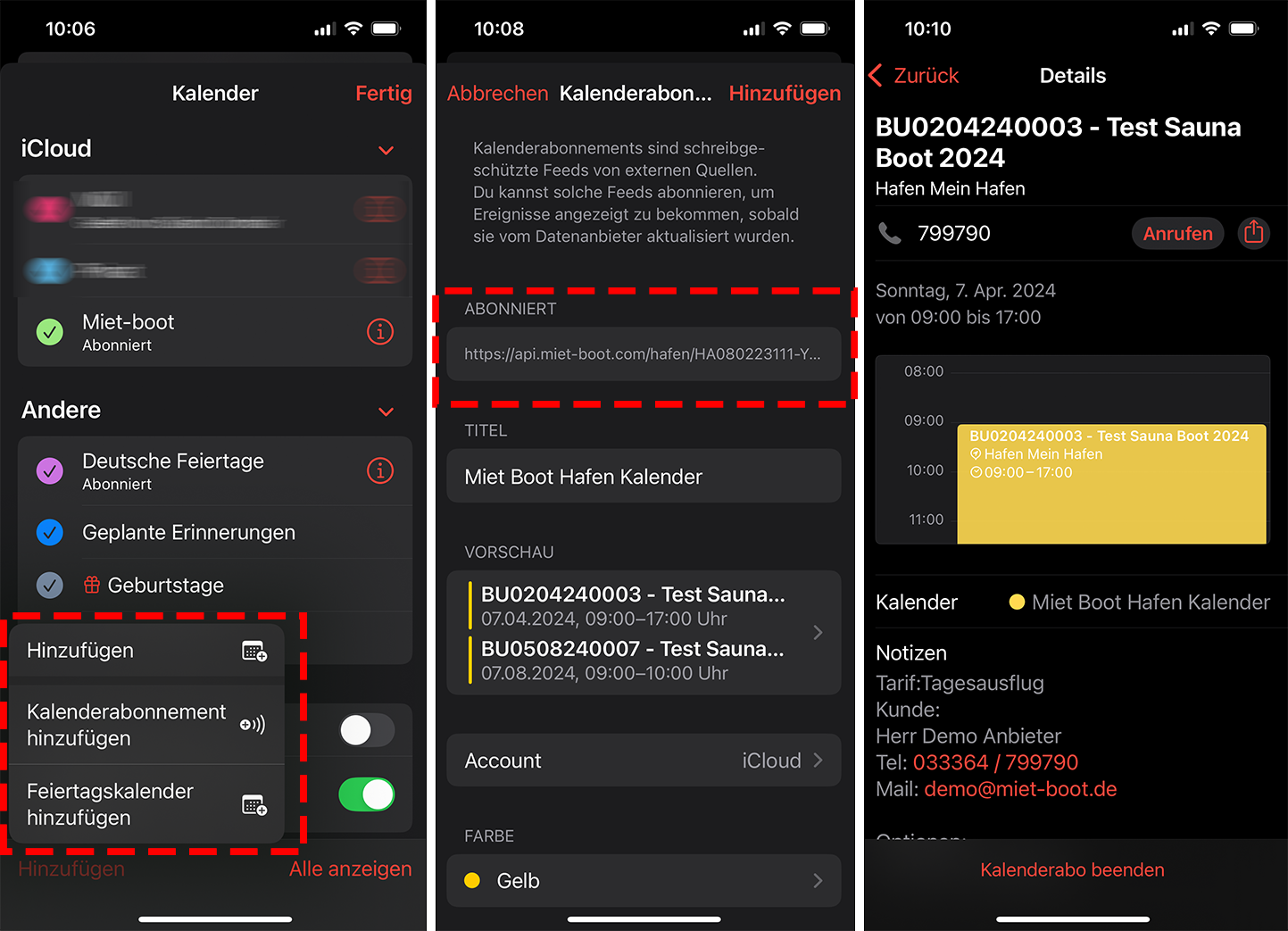 Möglichkeit 1: iCal-Link deines Hafens abonnieren