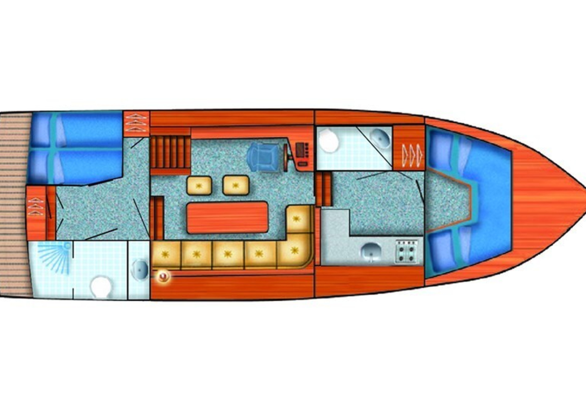 Die Albatros ist die ideale Familienyacht. Mit zwei großen, separaten Kabinen für je zwei Personen, stehen zwei komfortable Schlafbereiche zur Verfügung. Beiden Räumen ist jeweils eine Nasszelle mit WC zugeordnet. Dank der beiden Steuerstände – innen und außen – ist die Albatros vollkommen witterungsunabhängig. Damit eignet sich die holländische Proficiat auch für ausgiebige Touren in der Nebensaison. Viel Raum für gemeinsame Urlaubserlebnisse bietet der komfortable Salon. Nicht zu vergessen, dass die schönen Sonnenstunden auf der Badeplattform und dem großzügigen Vordeck am besten zu genießen sind – für die lauen Sommerabende ist das Achterdeck mit variablem Cabrioverdeck gerade richtig. Mit einem Bugstrahlruder gestaltet sich das Fahren auch für Anfänger problemlos.