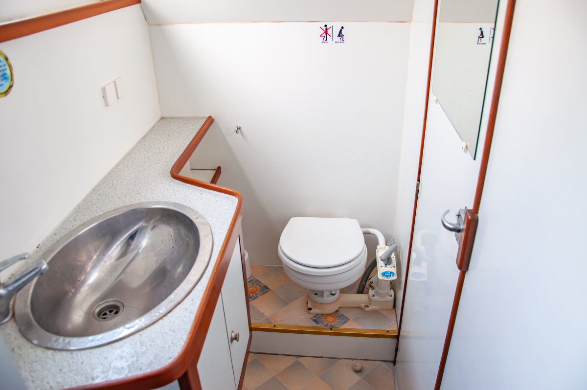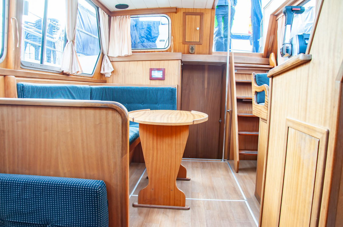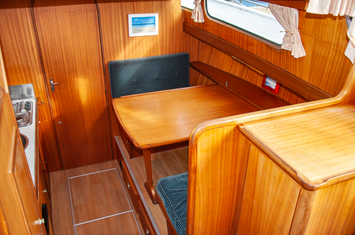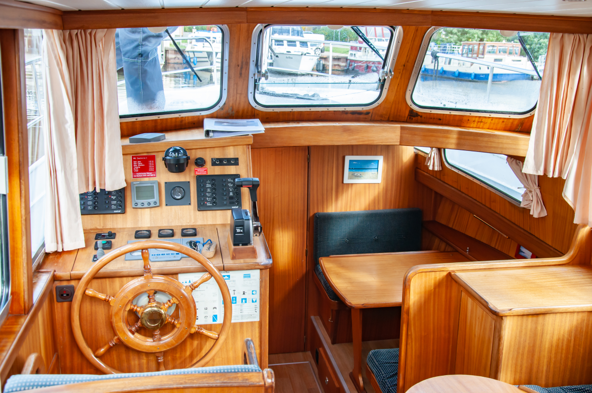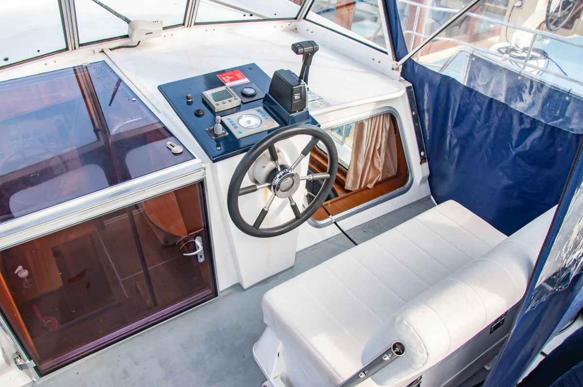 Der Außensteuerstand ist mit Cabrioverdeck ausgestattet und selbst wenn die Crew unter Deck verschwindet, muss der Skipper nicht außen vor bleiben. Im Salon ist ein weiteres Cockpit integriert. Vor allem bei ausgedehnten Bootstouren hat das Vorteile.