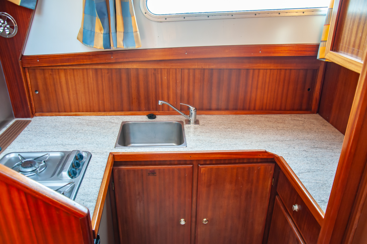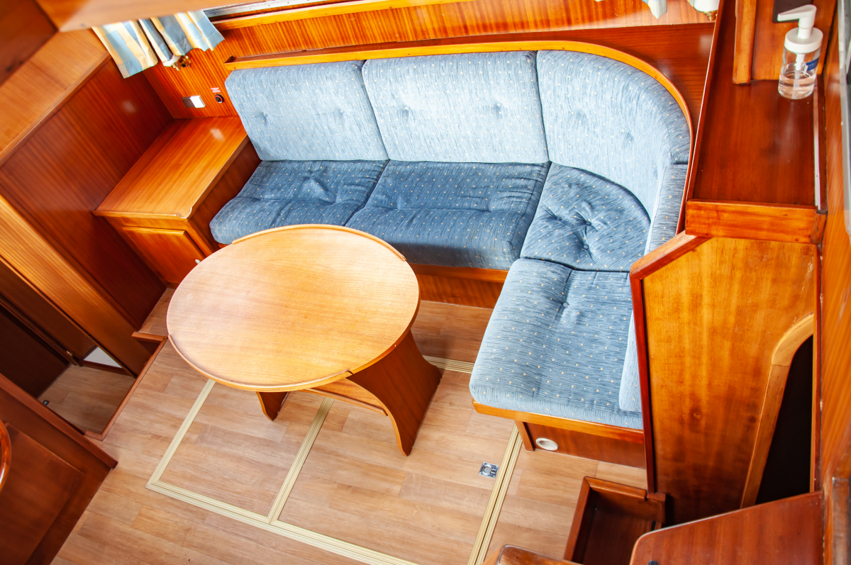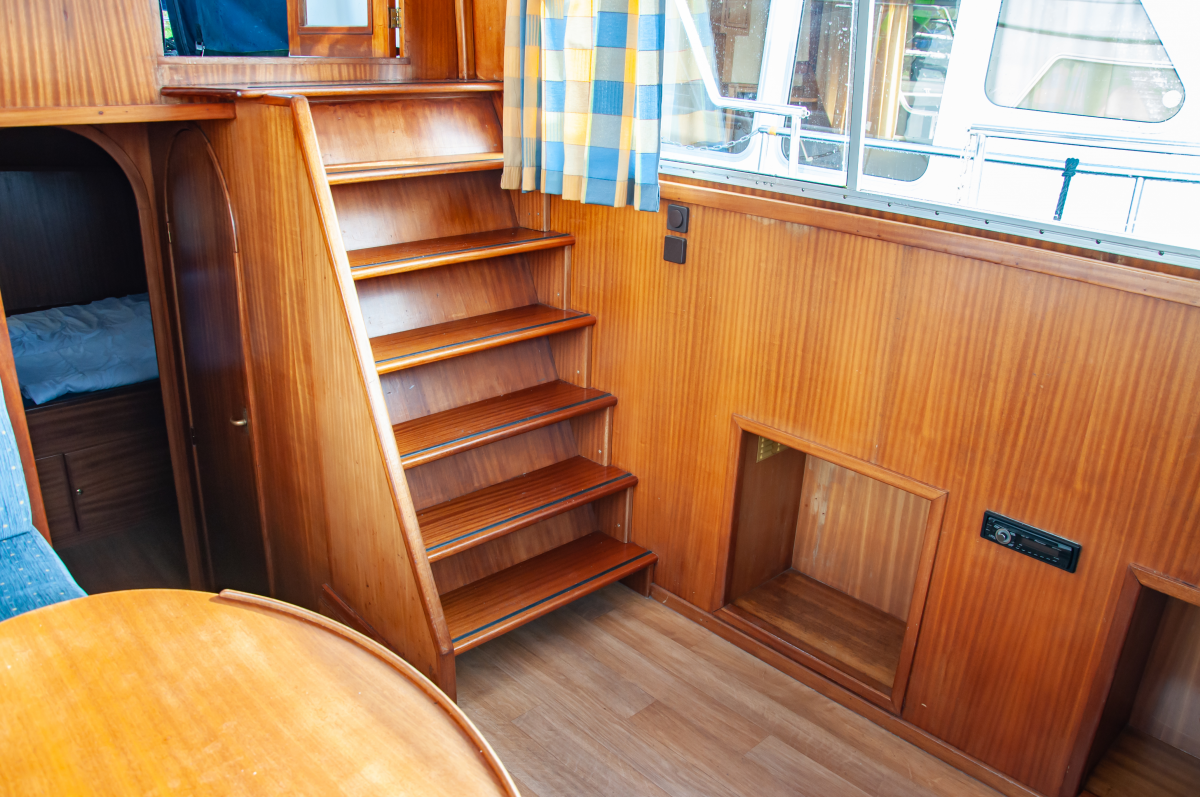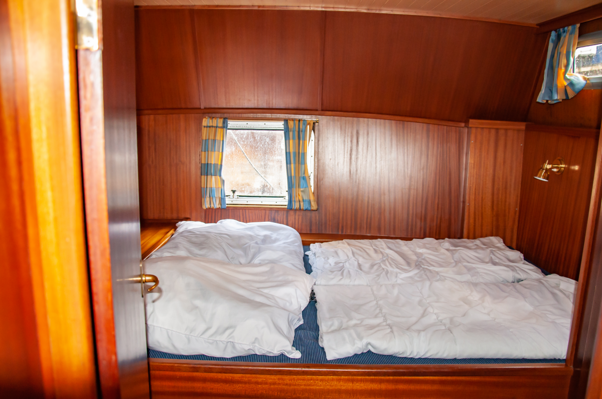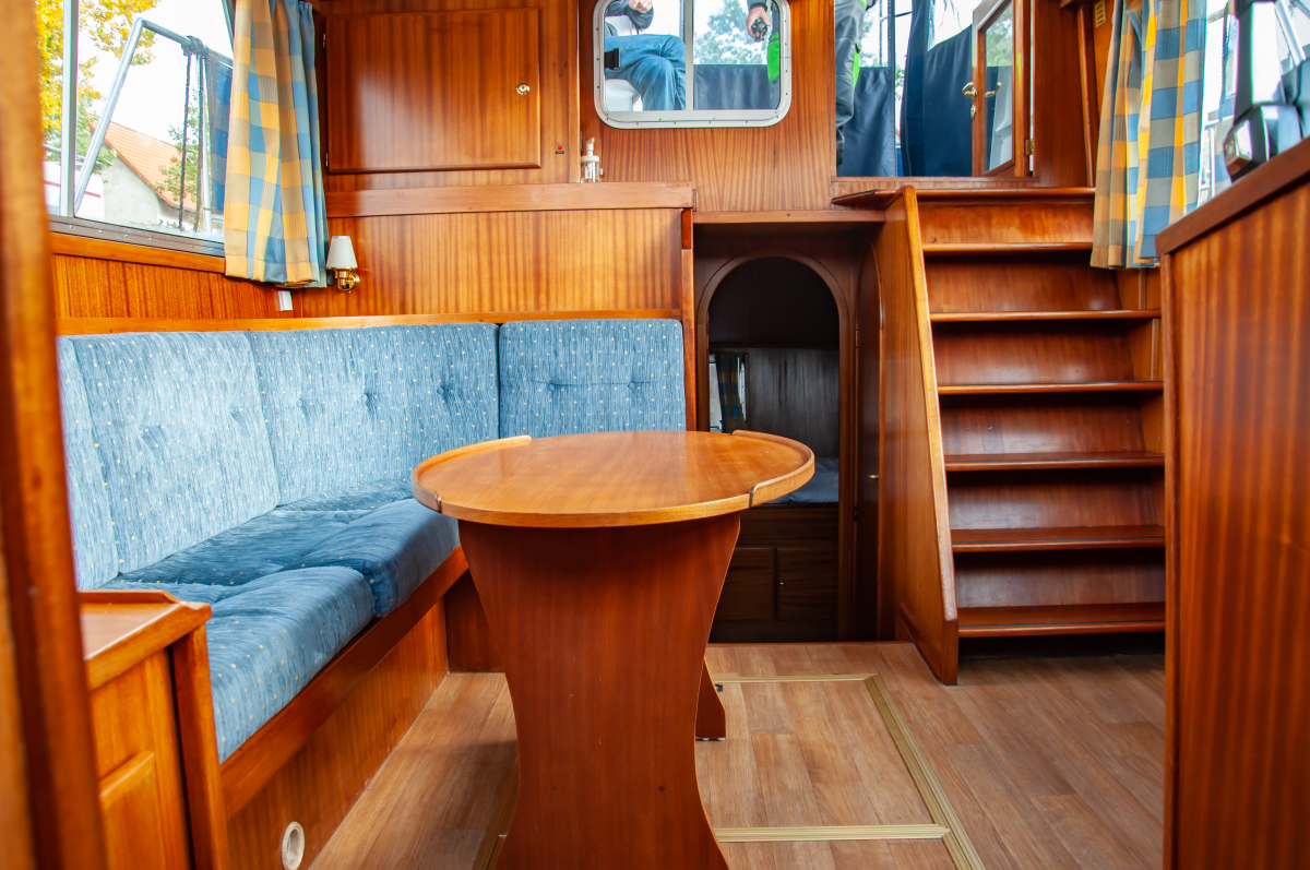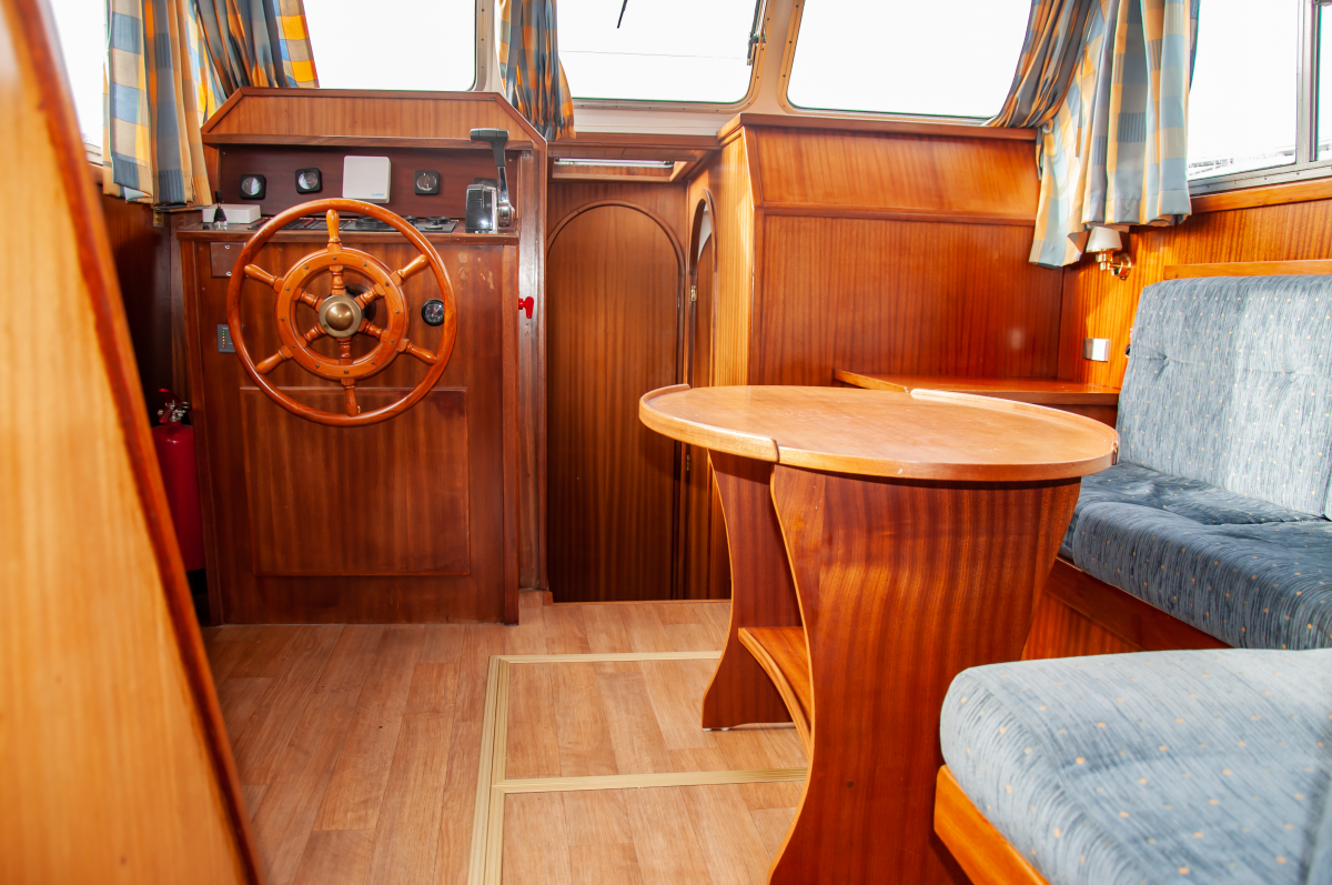 Die Seute Deern bietet für bis zu sechs Schiffsreisende viel Platz, Komfort und Rückzugsmöglichkeiten. Zwei Kabinen an Bug und Heck mit Doppelbett werden um eine weitere Seitenkabine mit Stockbett ergänzt. Eine ideale Aufteilung zum Beispiel für Familien mit zwei Kindern und mitreisenden Großeltern. Zwei Fahrstände – innen und außen – machen den Urlaubstörn wetterunabhängig. Als Kombüse taugt die Pantryküche allemal und der holzgetäfelter Salon sowie das Achterdeck bieten genügend Platz zum Sitzen, Speisen und Klönen. Dank Bugstrahlruder gelingen Hafenmanöver leichter, aber mit der Badeplattform stehen auch Ankerstunden hoch im Kurs.